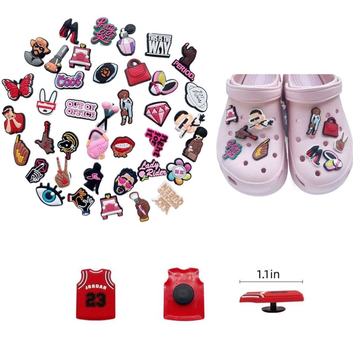 This shoe charms are expertly crafted from high-grade PVC material, they are waterproof and sturdy for long-lasting use. Trade with friends to customize your look, it can not only be used as decoration, but also perfect for party, gift, Christmas and Halloween stuff. The price depends on the size and Qty. Other sizes, attachments, and decoration options available, quoted upon request. The price includes the shipping cost to ca.
