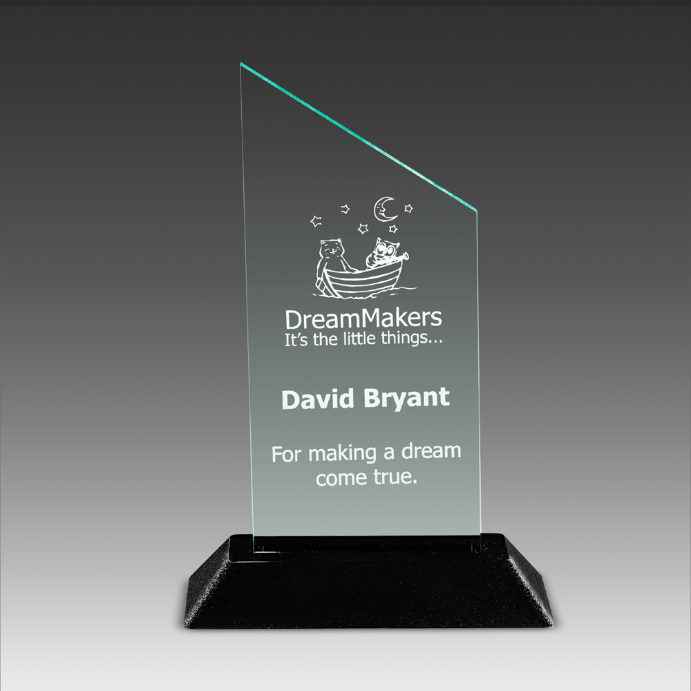 The Pop-Peak™ Pop-In Acrylic Award is a 3/8" thick rectangular acrylic recognition piece, available in clear or jade green acrylic. Its angled top adds a dynamic, modern look, while the original black Pop-In Base ensures a stylish display. Other base options are available and priced separately for added customization. This affordable award is a sleek way to honor achievement. Available in two sizes (APK-36N, APK-37N). Overall size includes base. All dimensions approximate. Pricing includes full-color, spot print or laser engraved imprint.