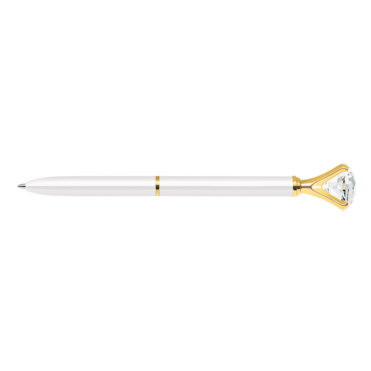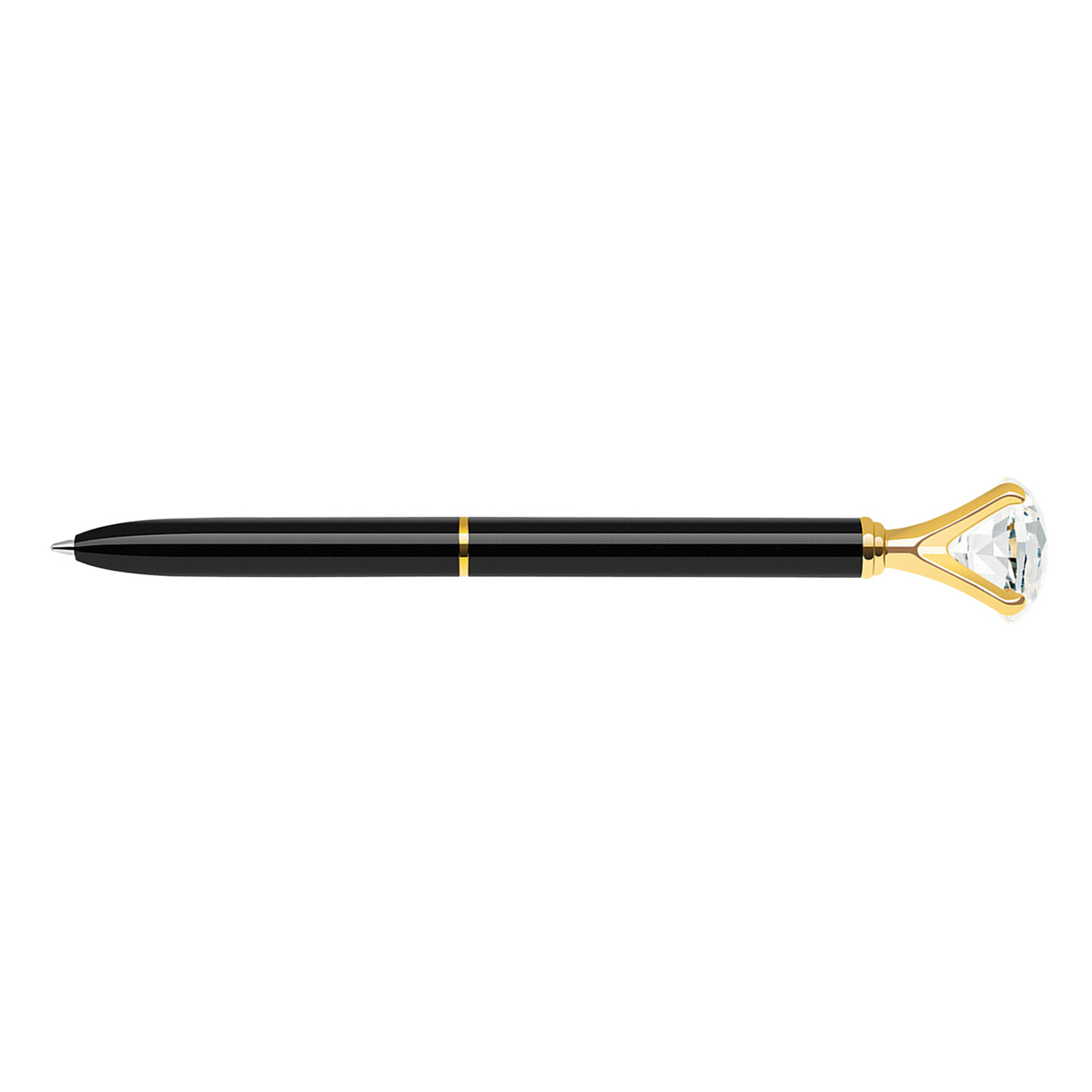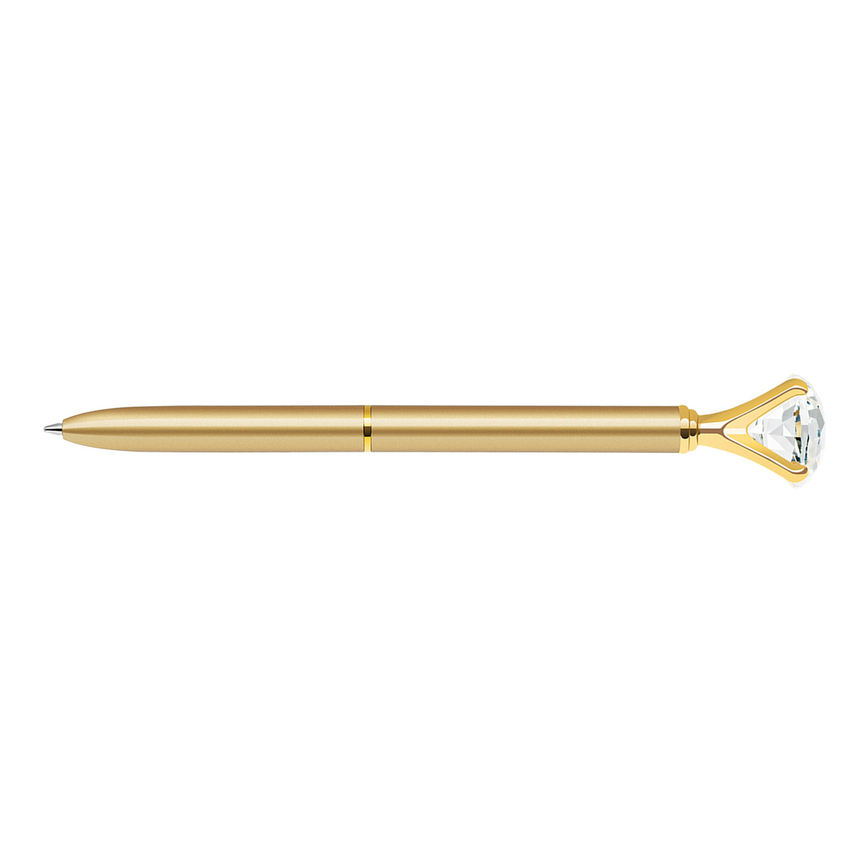 Twist action metal ballpoint pen with embedded diamond crystal on top (T5136)
